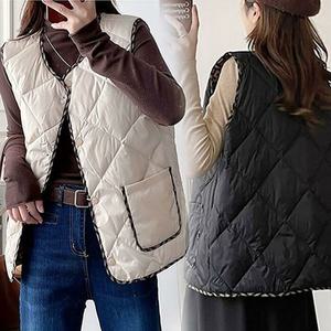(2장) 여성 양모패딩조끼 양모조끼 패딩조끼 누빔조끼 베스트 겨울 이너 브이넥 방한조끼