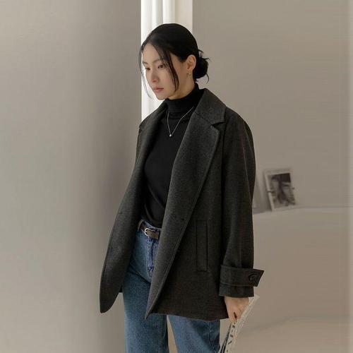 여 가을 겨울 모직 코트 고급스러운 느낌 작은 키의 루즈핏