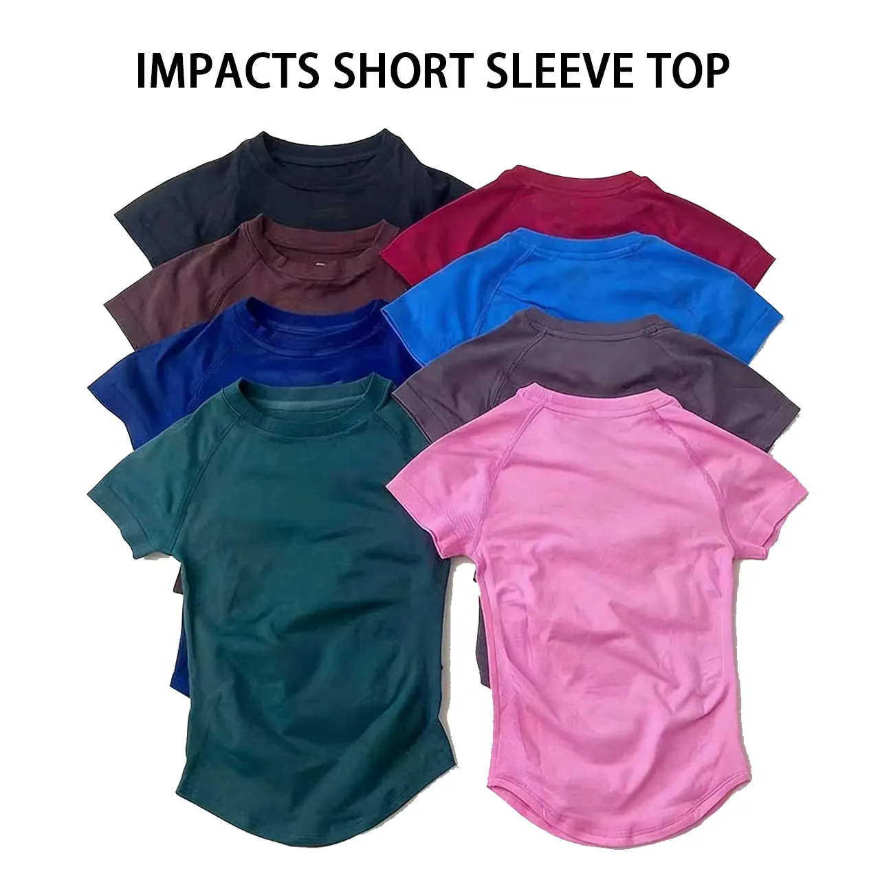 TEMU 여성용 경량 통기성 속건성 운동 티셔츠, 라운드 넥, 단색 반팔 스포츠 상의