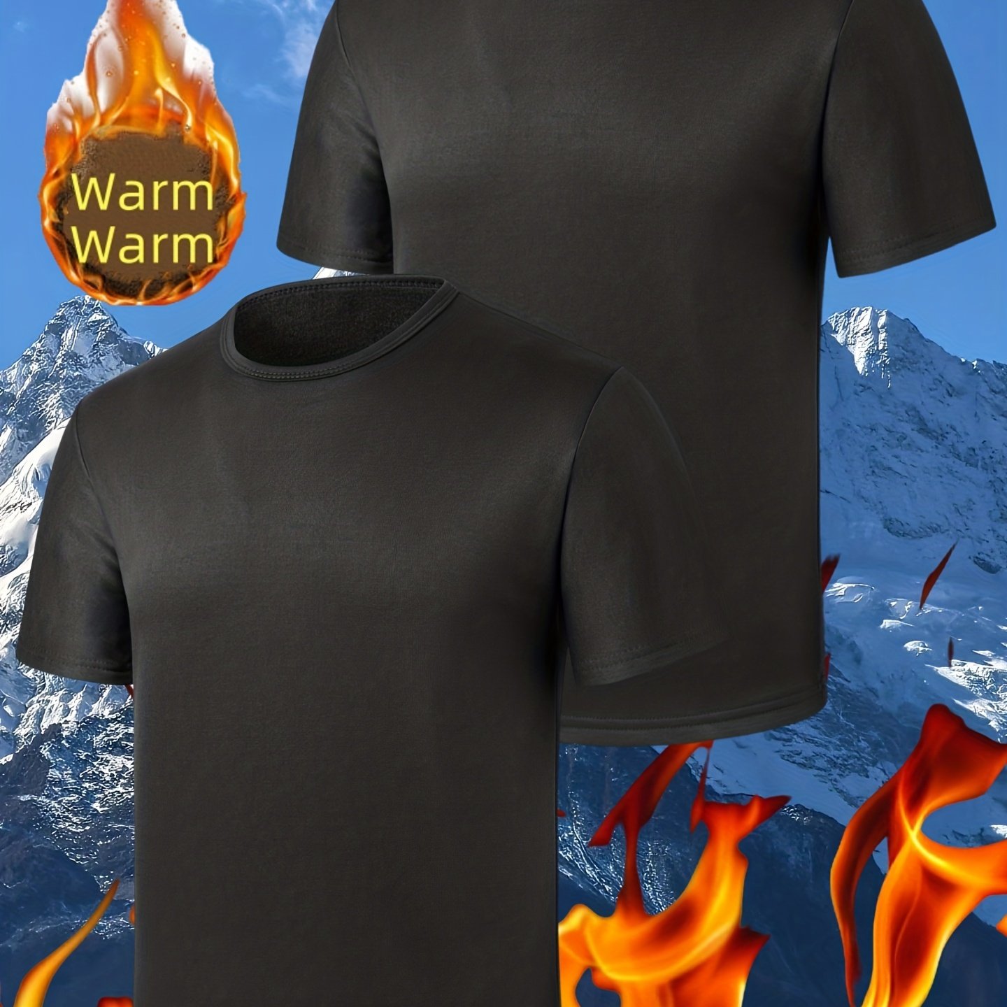 TEMU 몸에 꼭 맞는 라운드넥 반팔 안감 보온 라운드넥 상의, 가을 겨울용 캐주얼 반팔 스포츠 러닝용 타이트핏 상의