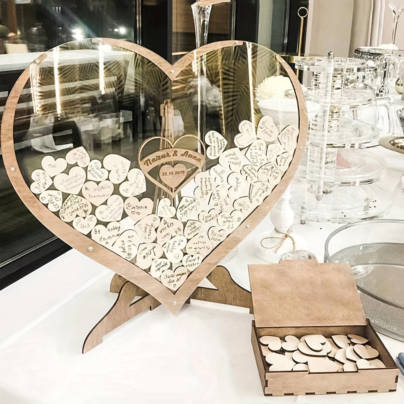 TEMU 2D 플랫, 웨딩 게스트북 스탠드 및 사인 박스 - 하트 모양 테이블 센터피스, 웨딩 파티 장식용 이름 및 날짜 디스플레이, 리셉션 사인 인 북, 입구 및 이벤트용 내구성 있는 게스트 리스트 오거나이저
