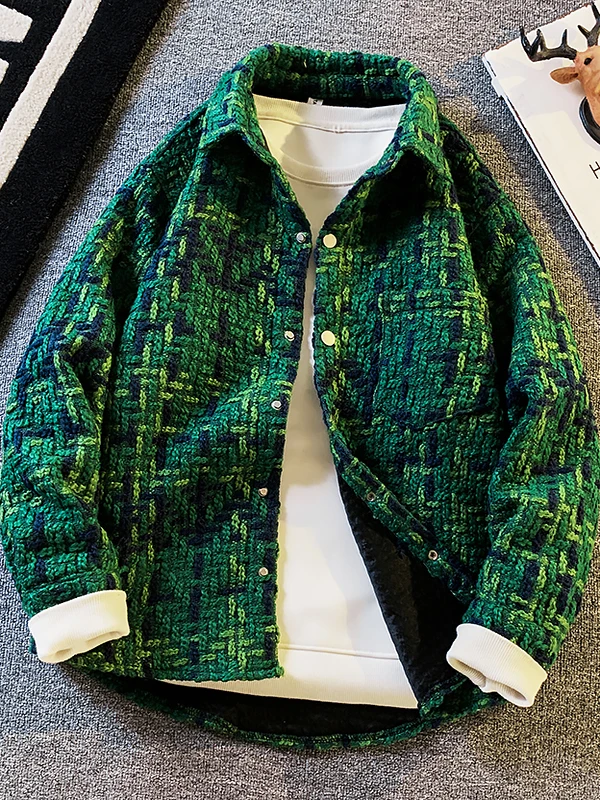 아메리칸 스타일 남성용 루즈 울 재킷 트렌디 브랜드 봄 가을 고급 거친 직조 체크 셔츠 캐주얼 아우터웨어