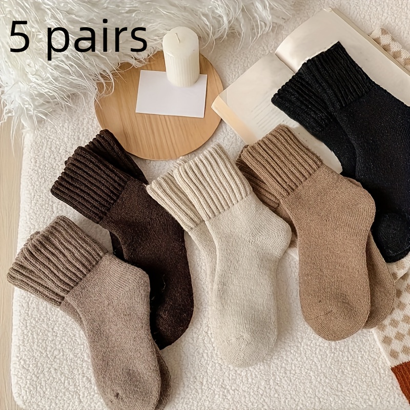 TEMU 여성용 겨울 보온 양말 5켤레 - 부드럽고 따뜻한 앵클 부츠 양말, 추운 날씨, 실내/야외 및 캐주얼 착용, 아늑한 홈 양말, 세탁기 사용 가능한 단색 (5켤레 팩)
