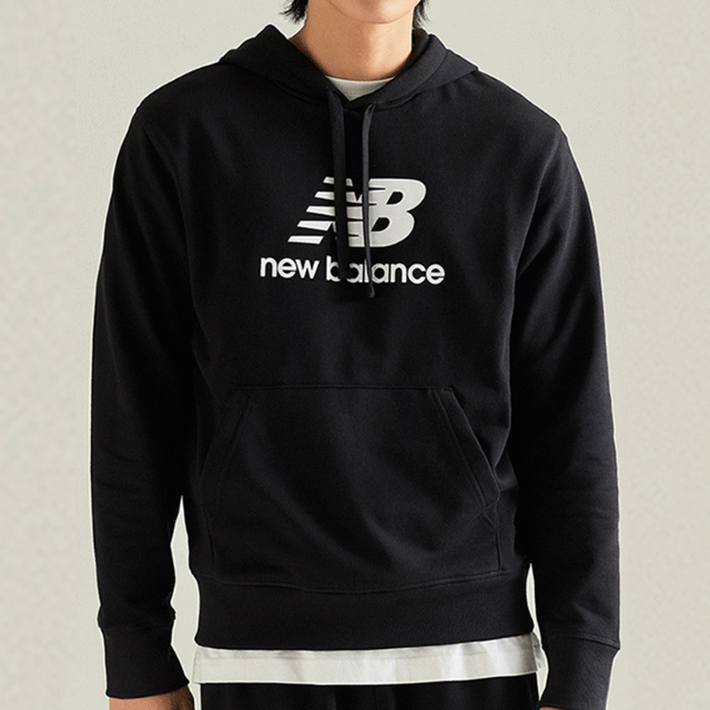[뉴발란스]에센셜 Stacked Logo 후드티셔츠 블랙