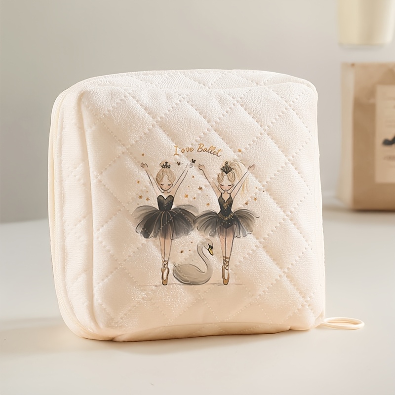 TEMU 발레 댄서 & 스완 프린트 지퍼 포켓 - 이어폰 및 액세서리용 대용량 정리함, 폴리에스터 소재, 중립 스타일, 여성용 개인품을 위한 이상적인 디자인, 액세서리 보관|발레 테마 디자인|지퍼 잠금