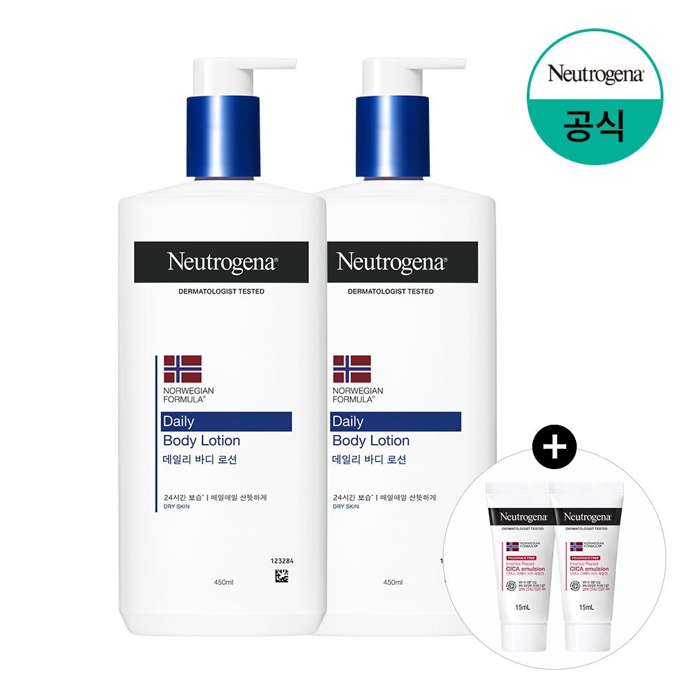 뉴트로지나 데일리 바디 로션 450ml , 2개 + 증정(아크네폼, 10g, 1개 + 인텐스 리페어 시카 에멀젼 15ml, 1개)