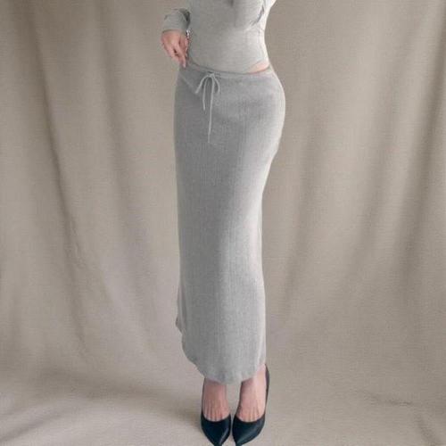 [신상오픈런]여성 로우웨이스트 허리끈 니트 펀칭 롱 스커트