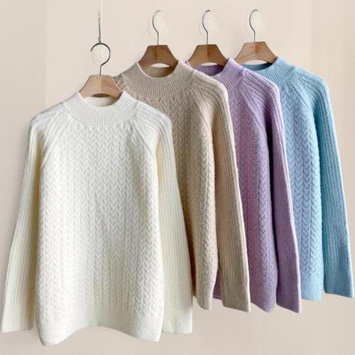 [미라클세븐]여성 파스텔 하이넥 니트 긴팔 롱티