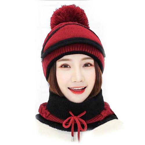 라엘 넥워머 털모자세트(와인) 니트마스크모자 WFL5939