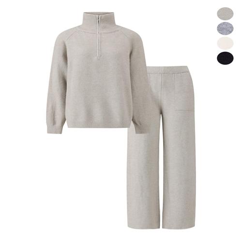 [잇수다] 울반드 반집업 울 니트 + 밴딩 와이드 팬츠 세트