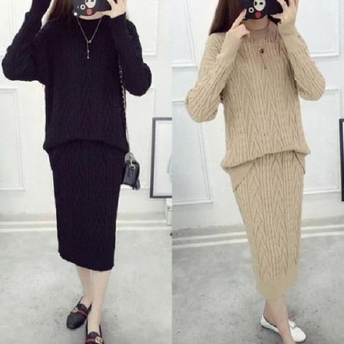 [엄지척]여성 4컬러 울 니트세트 반목 세련된 롱스커트 셋업_19557695_667501