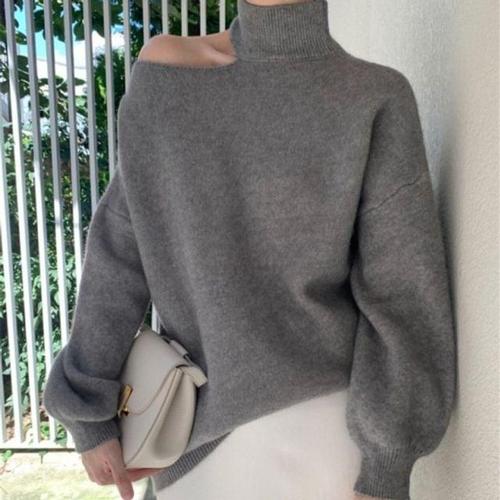 [다잇템][다잇템] 여성 롱슬리브 사랑스러운 초커넥 볼드숄더 골지 니트_23460800_588872