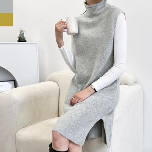 [다잇템]여자 FW 폴라넥 민무늬 골지 힙커버 니트조끼