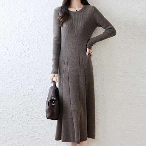 NUNUHANA 여성 베이직 롱 니트 원피스