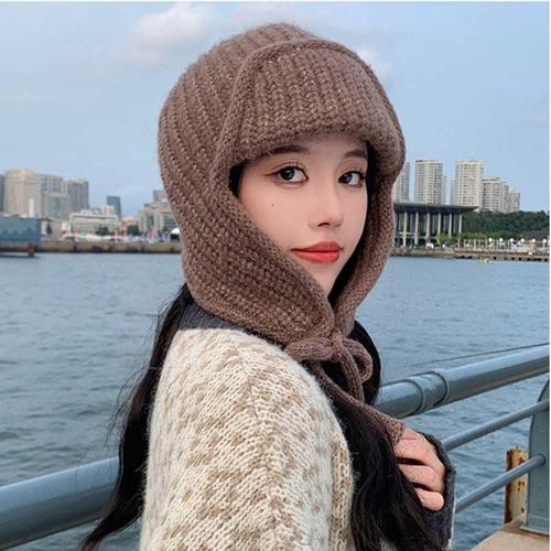 이코마켓 탄탄한 모직니트 귀달이모자 방한 여성 겨울 귀마개 벙거지 보넷