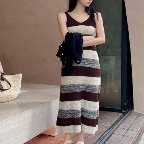 [굿쇼핑몰_의류]민소매 배색 나시 여름 니트 롱 원피스 휴양지룩