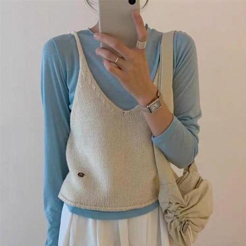 [셀러허브_여성트랜드패션]여자 딥 브이넥 골지 니트 끈나시 루즈핏 조끼