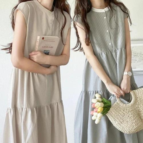 [룽스]여름 민소매 여름하객원피스 반팔 롱 바캉스 원피스