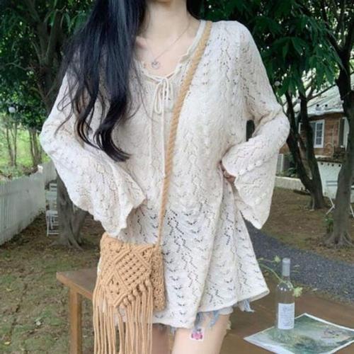 슬리브 여자 니트스웨터 끈 데일리룩 롱핏울탑 풀슬리브 티 WFJIXQ0