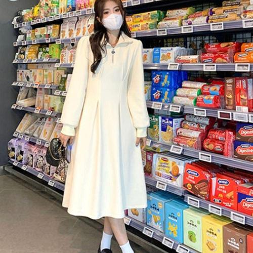 [끌레아]여자 원피스 캐주얼룩 롱원피스 봄 M로고 니트 긴팔 여성 여성 만삭촬영 후드 롱 캐주얼 예