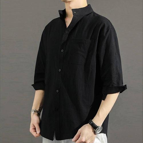 TBZ 차이나카라 린넨 반팔 셔츠 롤업 여름 반팔티 WFMGQJ8