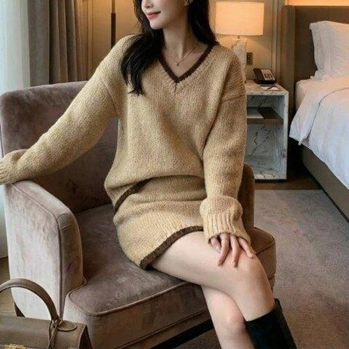 [아리엘스타일]배색니트 캐주얼셋업 니트세트 렌다이투피스
