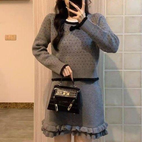 [엄지척]가을 겨울 라운드투피스 세트 스커트 투피스 니트투피_19873216_667501