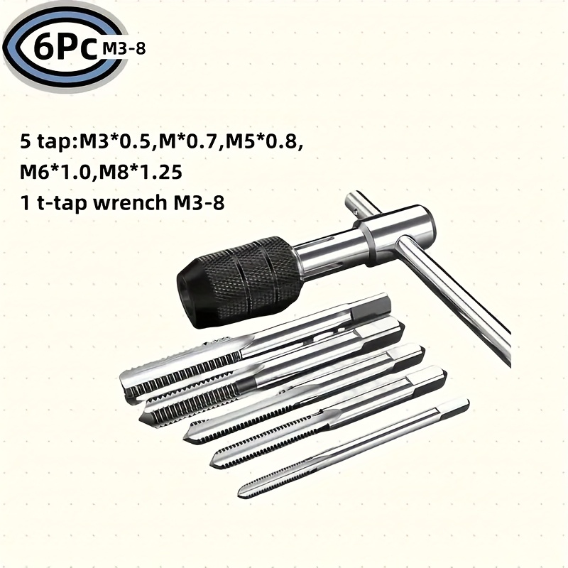 TEMU 고품질 T-핸들 라쳇이 특징이며 M3-M8 나사산에 맞춰 조절 가능한 6pcs 스크루드라이버 및 렌치 세트입니다. 금속, 알루미늄, 플라스틱 및 목재 모두에 적합하며 내구성이 뛰어난 금속 공구 키트이며 가정용 및 전문가용으로 적합합니다.