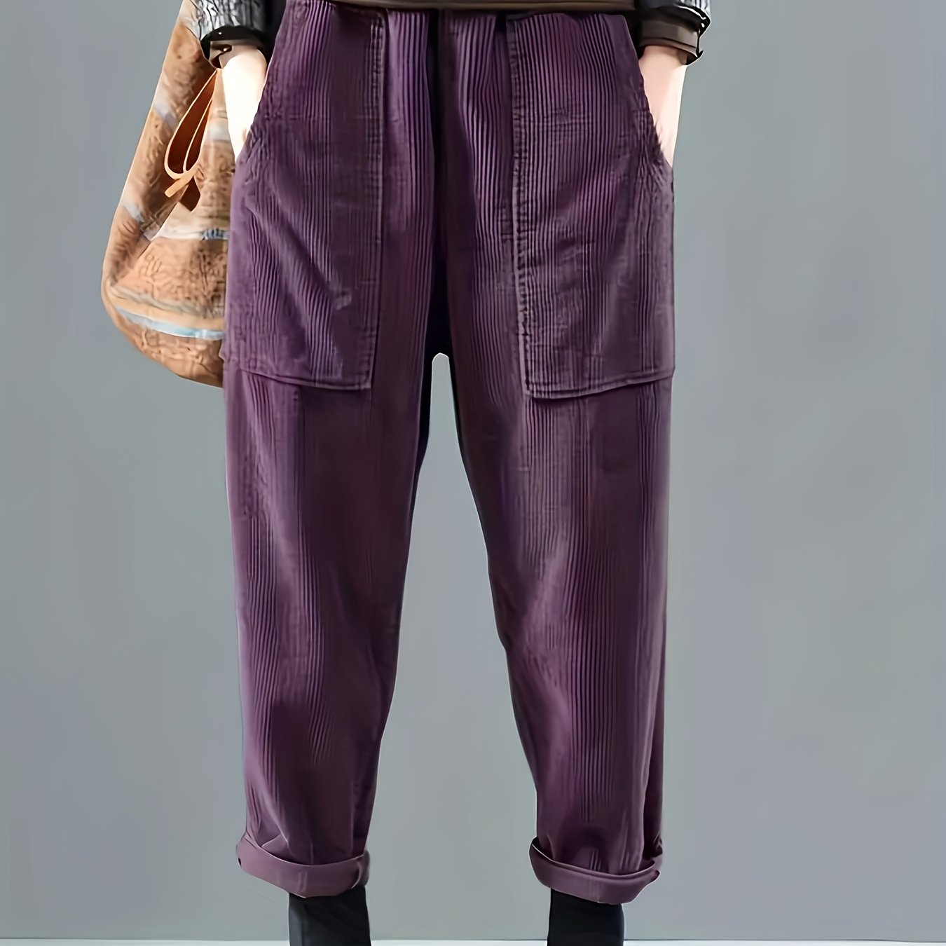 TEMU 여성용 캐주얼 코듀로이 긴 바지, 편안하고 다재다능한 포켓 디자인