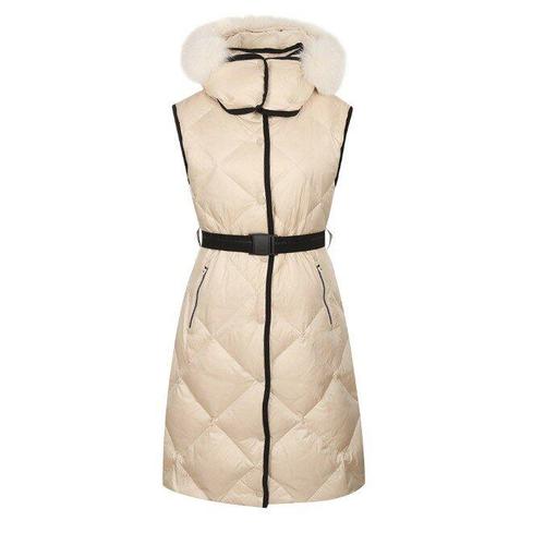 [세인트 앤드류스] 여성 사각 셔링 벨티드 구스다운 롱 패딩 베스트(821E4JV008)