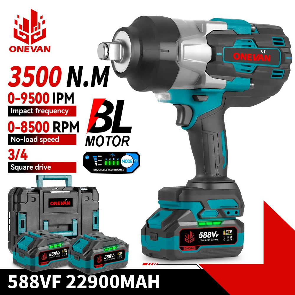 ONEVAN 3500N.M 브러시리스 전기 임팩트 렌치 3/4인치 무선 고토크 렌치 파워툴 (마키타 18V 배터리 핀용)