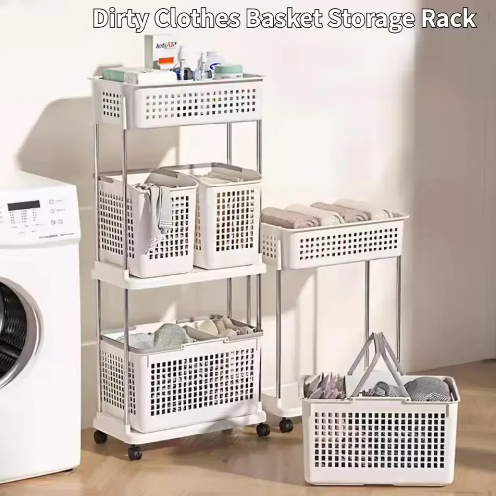 세탁 바구니 트롤리 플라스틱 더러운 옷 바구니 확장 및 높이 조절 쉬운 조립 통기성 세탁 이동식 보관 선반