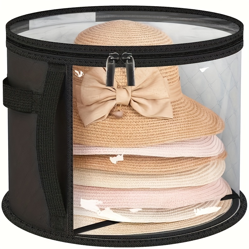 TEMU 투명한 창, 더블 지퍼 및 안전 벨 저장함 - 내구성, 가벼움, 코우보이 모자, 선 모자, 해변 모자, 의류, 장난감 및 일상적인 통근 액세서리에 적합 - 블랙 PVC, 인쇄된 패턴이 없으며 세탁 가능