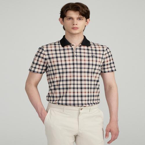닥스 남성 [GIFT] 베이지 체크 프린트 반팔 카라 티셔츠 (DMTS5BC03I2)