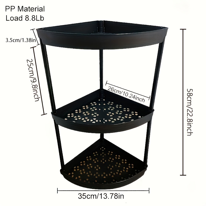 TEMU 오일, 소금, 식초와 같은 조미료를 보관하기 위해 설계된 주방용 코너 선반입니다. 가벼운 물품 보관에 적합하지만, 무거운 물품은 올리지 마세요.