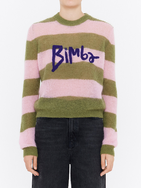 [빔바이롤라] [24FW] 빔바이롤라 핑크 & 카키 스트라이프 니트 B246AWK003KAB