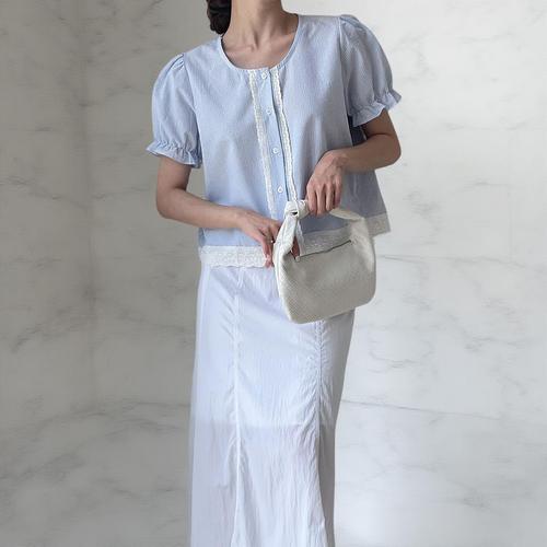 [다잇템]여자 벌룬반팔 들러리룩 단가라 코튼 셔츠