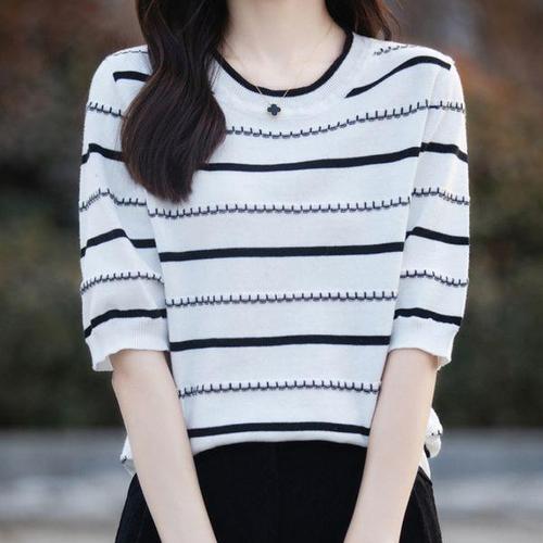 미중 여성 뉴 반팔 면 캐주얼 스트라이프 라운드넥 박시 심플 홈 외출용 롱원피스rll
