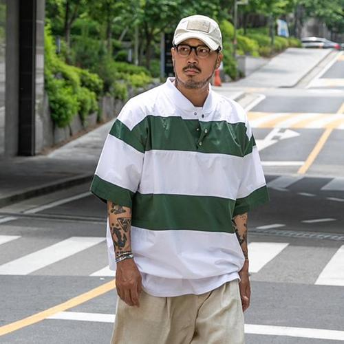 [러기드하우스]러기드하우스 스트라이프 럭비 반팔티 그린