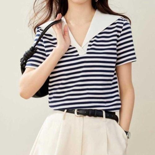 여성 마린룩 스트라이프 카라 반팔티 1P 세일러 패션 WFL7VV4