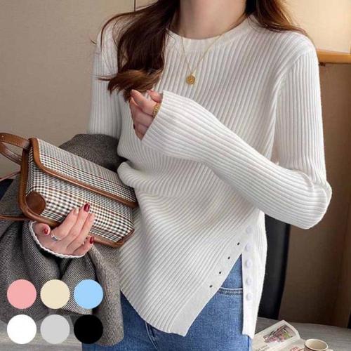 [굿쇼핑몰_의류]여성 버튼 골지라운드니트 티셔츠