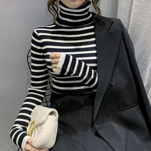 [엄지척]스트라이프 소매단추 골지 니트티 슬림핏 심플_19807183_667501