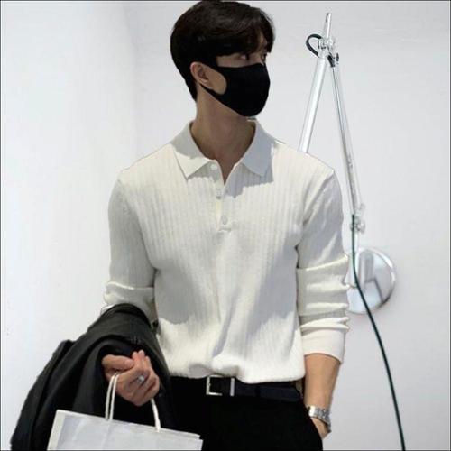 신축성 카라 버튼 남자 티셔츠 단정한 긴팔 골지 WFLDIJL