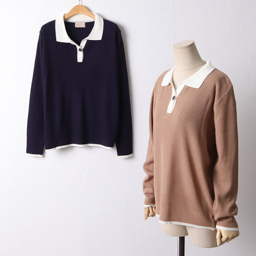 [프로셀러] 남성 2컬러 캐주얼 데이트룩 단추 골지 니트티셔츠