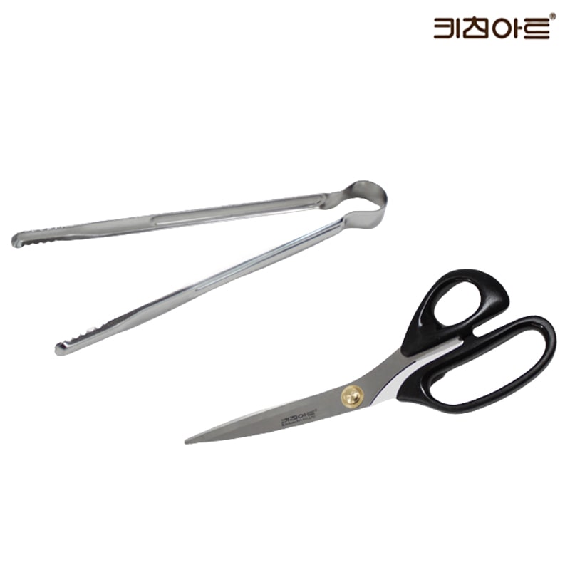 키친아트 키친아트, 금상첨화 스텐레스 집게가위세트 (악어집게 대+갈비가위 중) 주방집게 주방가위
