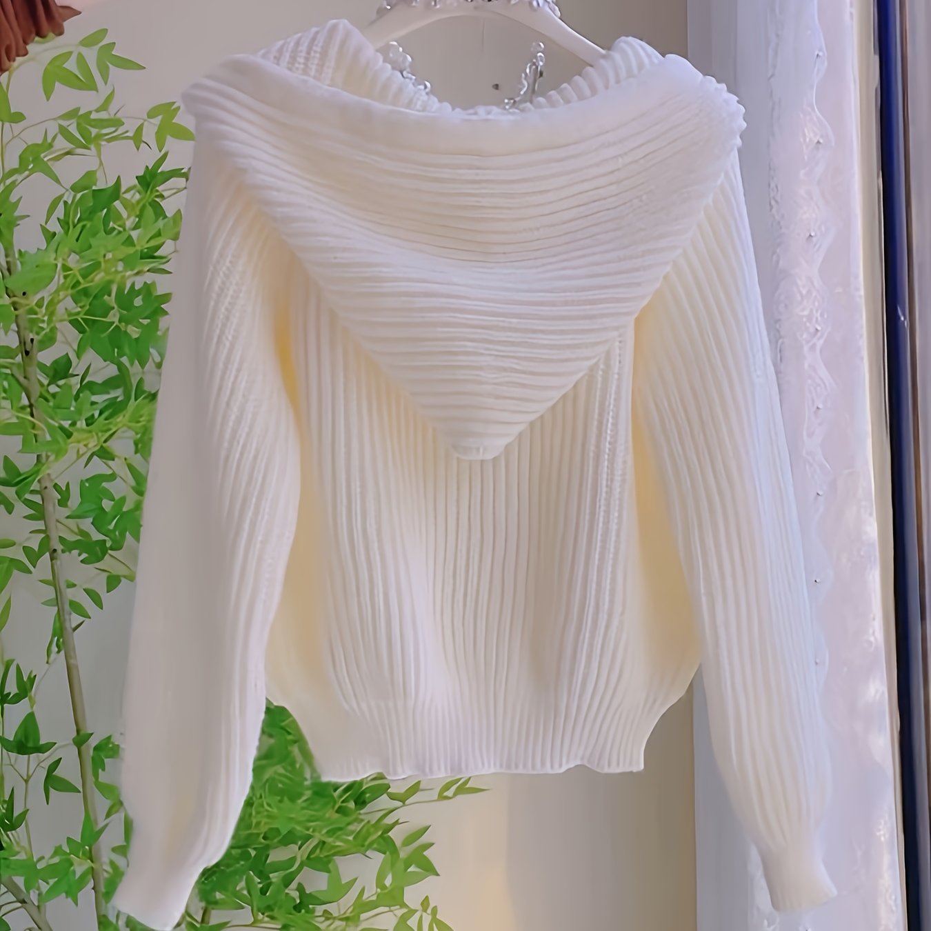 TEMU 2025년 가을/겨울 신상 여성용 가디건, 단색, 후드, 싱글 브레스트 스웨터