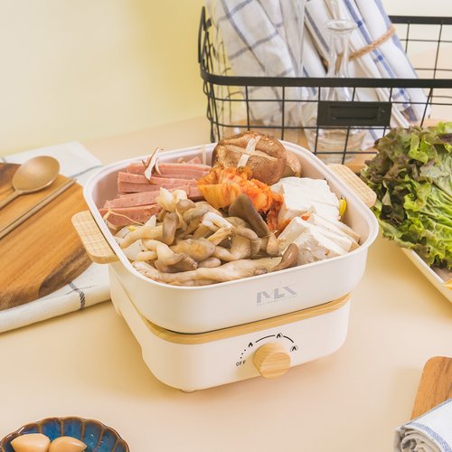미라스 2in1 미니 멀티 쿠커 컴바인 트윈팟 전기 그릴팬 전골냄비 CA-2W15WH_A