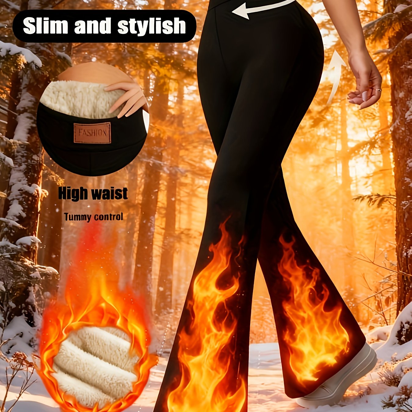 TEMU 여성용 하이웨이스트 겨울용 따뜻한 플레어 팬츠 - 두꺼운 보온 탄력 허리밴드, 추운 날씨용 블랙 스트레치 레깅스, 캐주얼 및 세미포멀 의상, 손세탁 가능, 베이스 레이어 팬츠,반정장 복장,여성용 스트레치 팬츠,단열 바닥, 디자인,플레어드 레그,두꺼운 소재,신축성 있는 원단,추운 기후 거주자