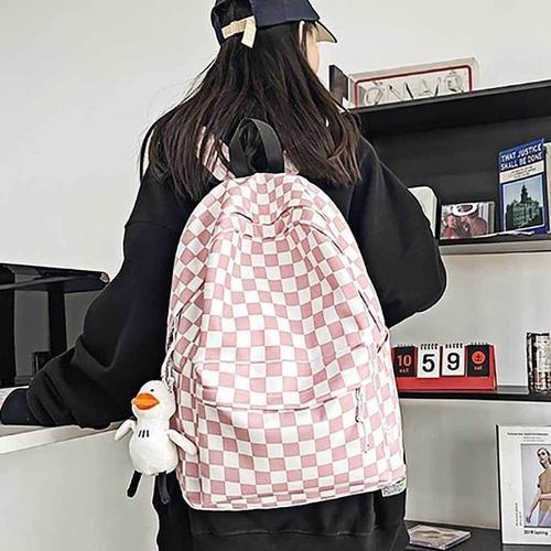 남성용 백팩 체크무늬 고등학교 대학 가방 15인치 노트북 배낭