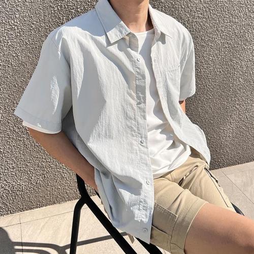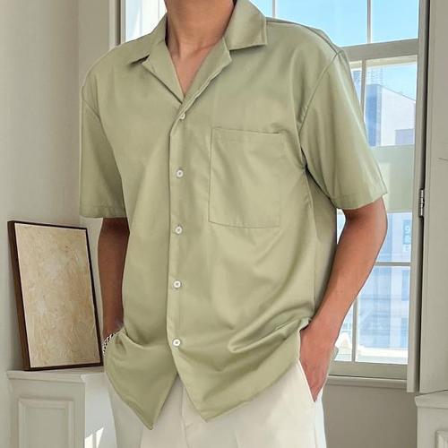 [더맨쉽][더맨쉽] 여름 데일리 브이넥 오픈카라 오버핏 반팔 셔츠